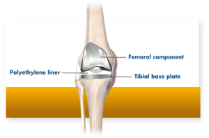 During a total knee replacement, also known as total knee arthroplasty, your surgeon removes the worn or damaged parts of your knee joint and replaces them with specially designed metal and plastic components called implants.